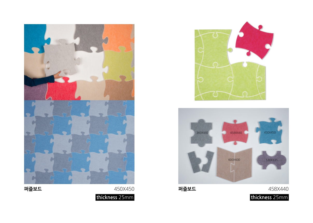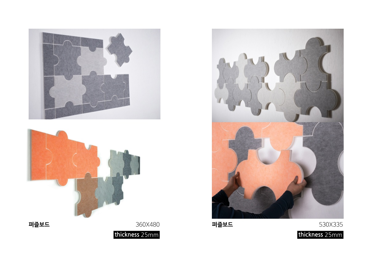 With 9mm thickness, unique design interior is realized by a wide cutting patterns from punching to puzzle with own design in various space environments. Because, as a 100% polyester (Environment-friendly product), it is soft and light, it can be built easily. And it does not crumble or break. Because it is strong against humidity and it discharges the moisture, it makes it impossible for the fungus or the mites inhabit.
