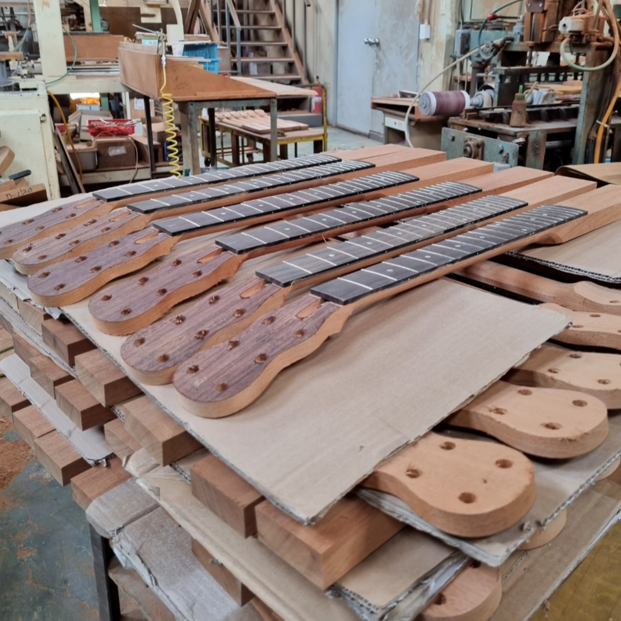 We control the entire production process, from personally purchasing raw materials to building, assembling, and finishing guitars in our own facilities. Our passion for excellent technology and good tone is evident in the high-quality guitars we produce.